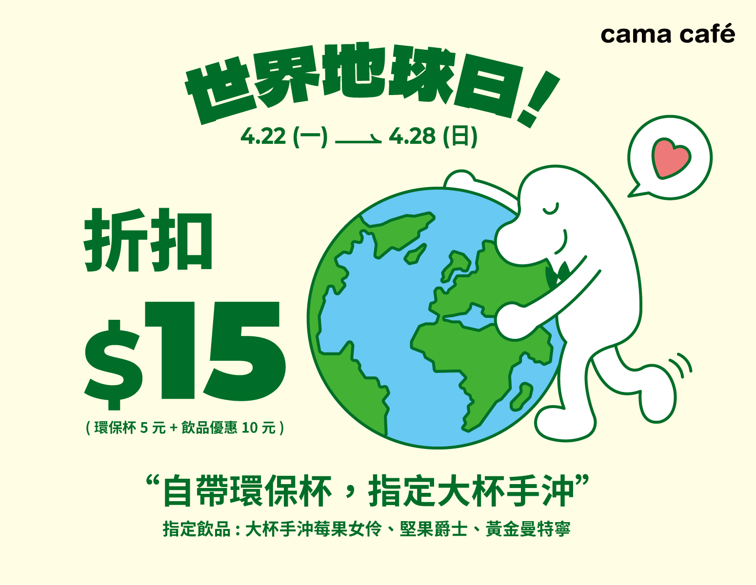 世界地球日一起環保愛地球 自備環保杯指定手沖精品享15元折扣